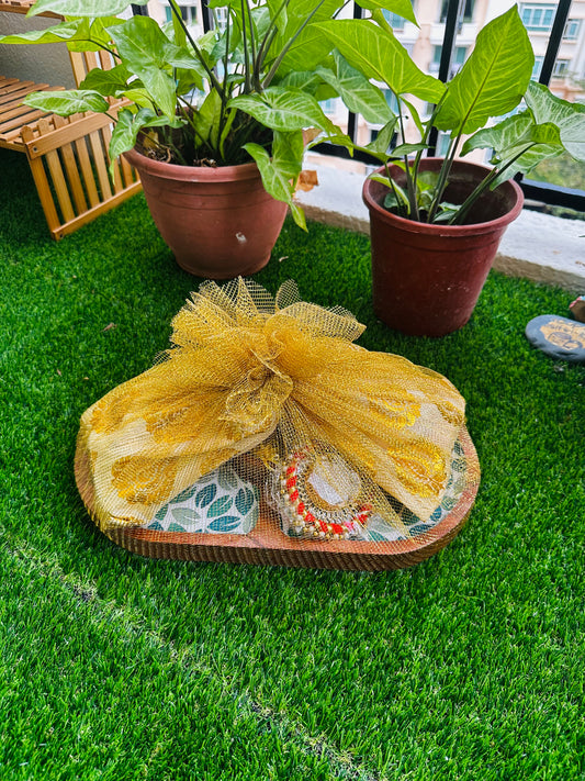 Festival Gift Hamper 1 : Wooden dual side leaves platter with festive goodies including normal delivery