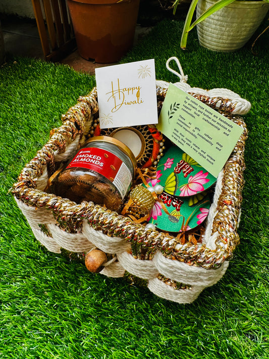 Festival Gift Hamper 3: Wooden turquoise dream tray with festival goodies including normal delivery