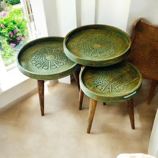 Mango Wood Antique Washed Green LeafHaven Detachable Tables