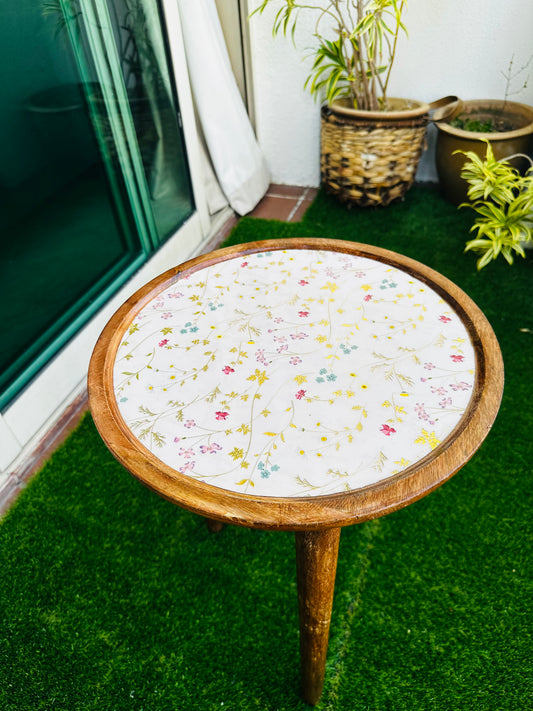 Acacia Small Wooden Accent Table Meraki Floral Enamel Blooms Detachable Legs Table - single