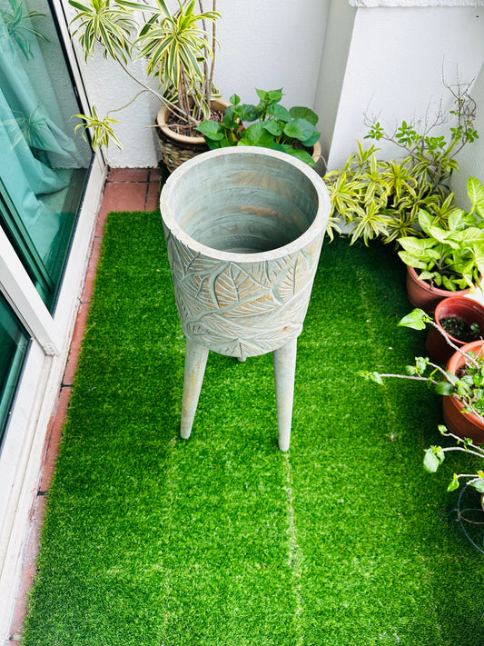The Antique Verdigris Vessel Mango Wood Sofa Side Planter with detachable legs