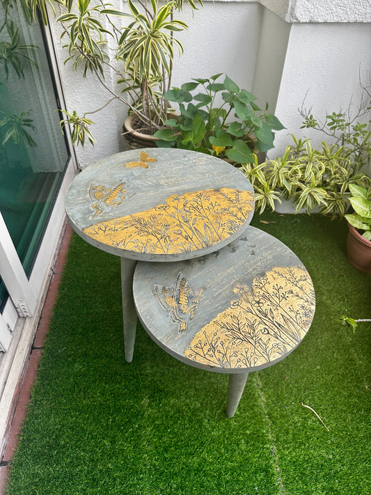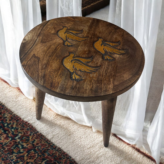 The Golden Flutter Vintage Wooden Accent Table with Detachable Legs