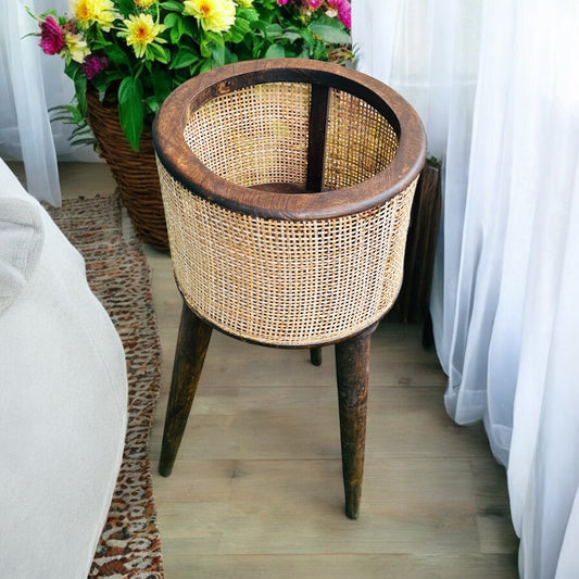 Casa Verde Mango Wood Rattan Planter with Detachable Legs - single