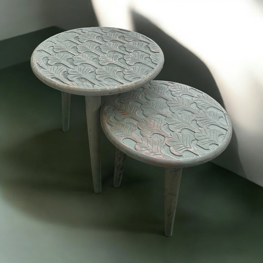Antique Carved Grey Wooden Accent Table with Detachable Legs