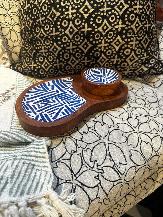 Meraki Blue Meridian Acacia Wood Chip and Dip Platter
