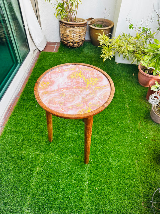 Acacia Wooden Accent Table Small Blush Enamel Detachable Legs Table - single