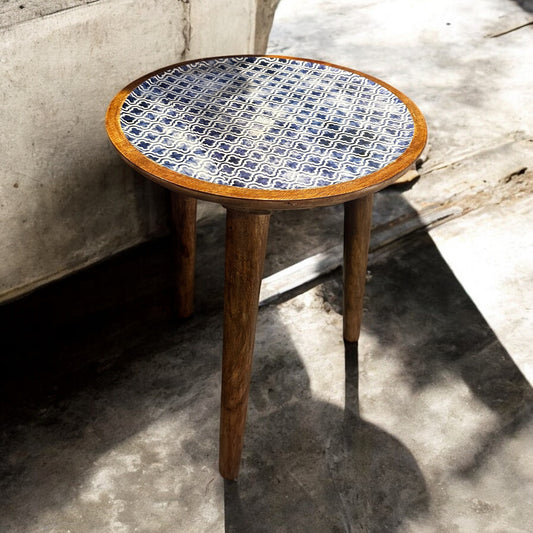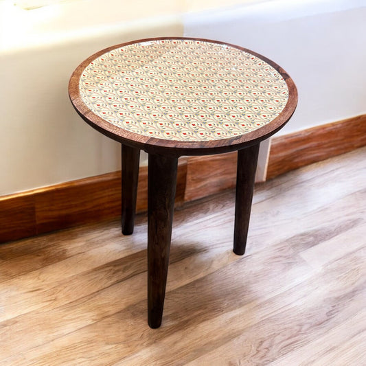 Mango Wood Accent Table Scarlet Blossom Enamel Detachable Legs Table - single