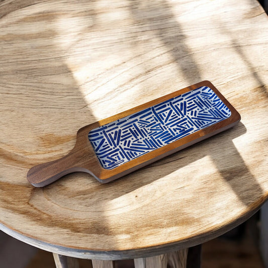 Meraki Blue Meridian Long Acacia Wood Platter - single