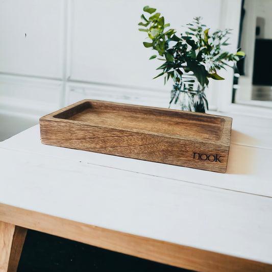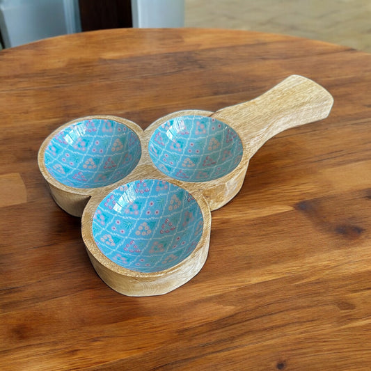 Meraki all-wood Botanical Bliss three-bowl platter - single