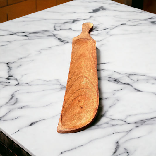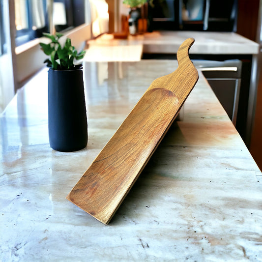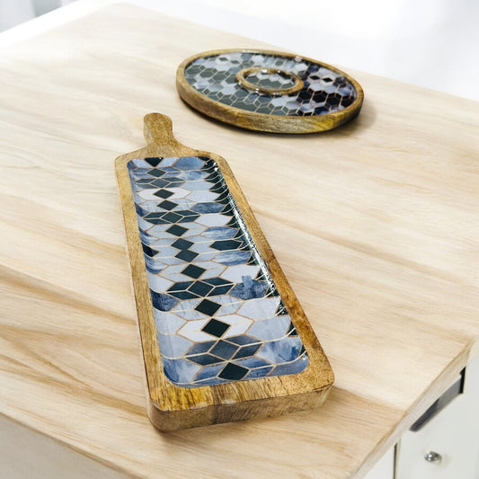 Meraki Contrast Geometric Elegance Mango Wood Long Platter - single