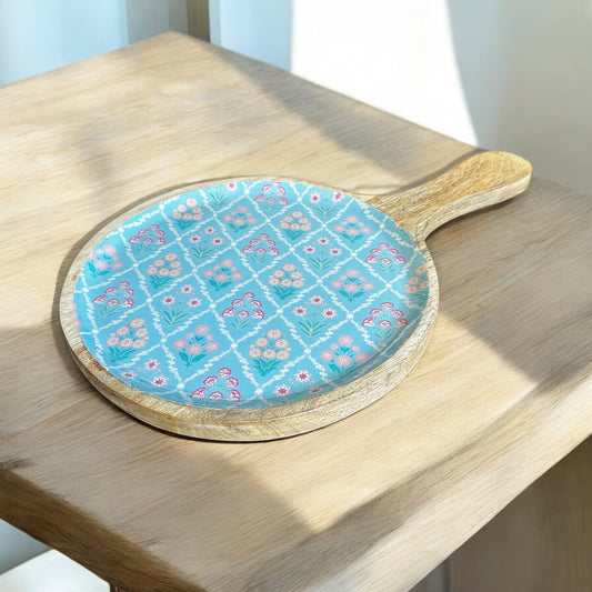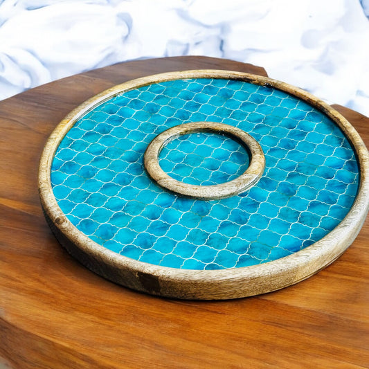 Meraki Turquoise Dream Mango Wood Round Dip Platter - single