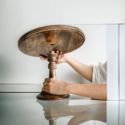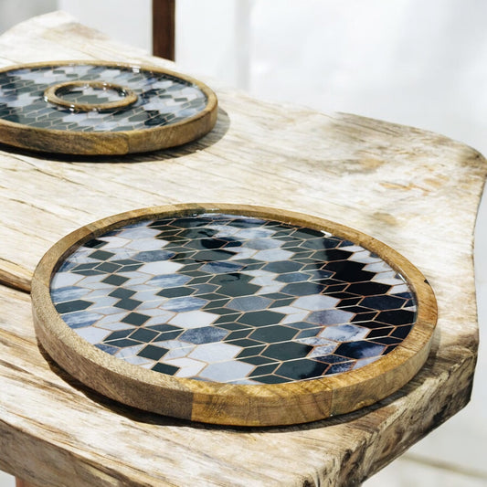 Meraki Contrast Geometric Elegance Mango Wood Round Platter - single