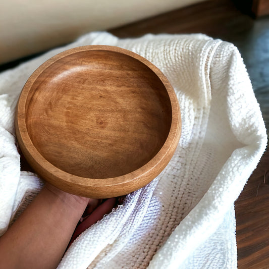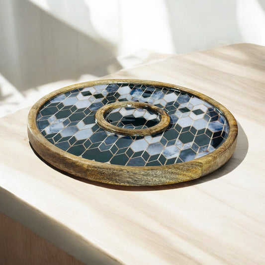 Meraki Contrast Geometric Elegance Mango Wood Round Dip Platter - single