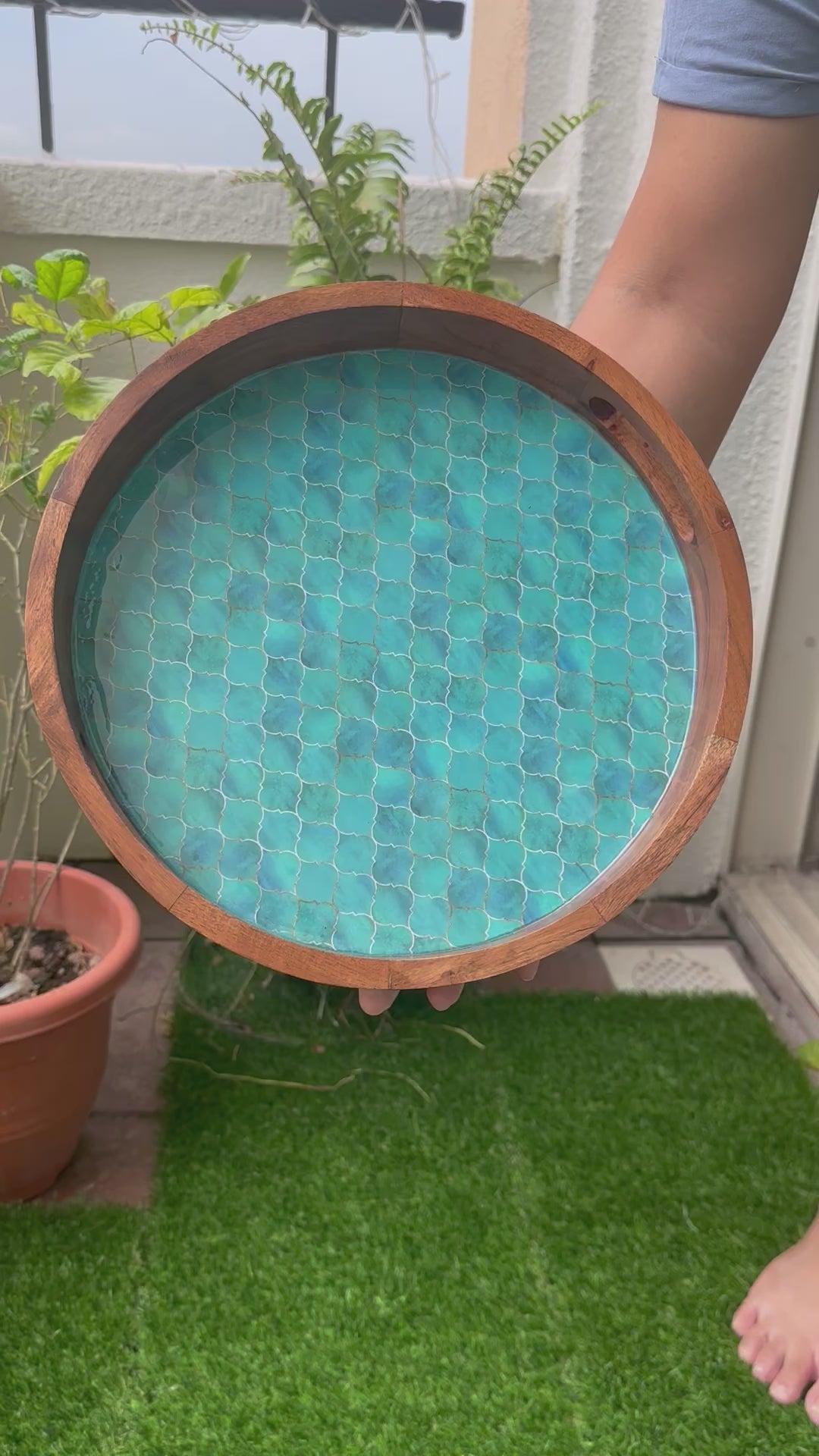 - Acacia wood Turquoise Dream Tray by Nook (12" X 12" X 2")