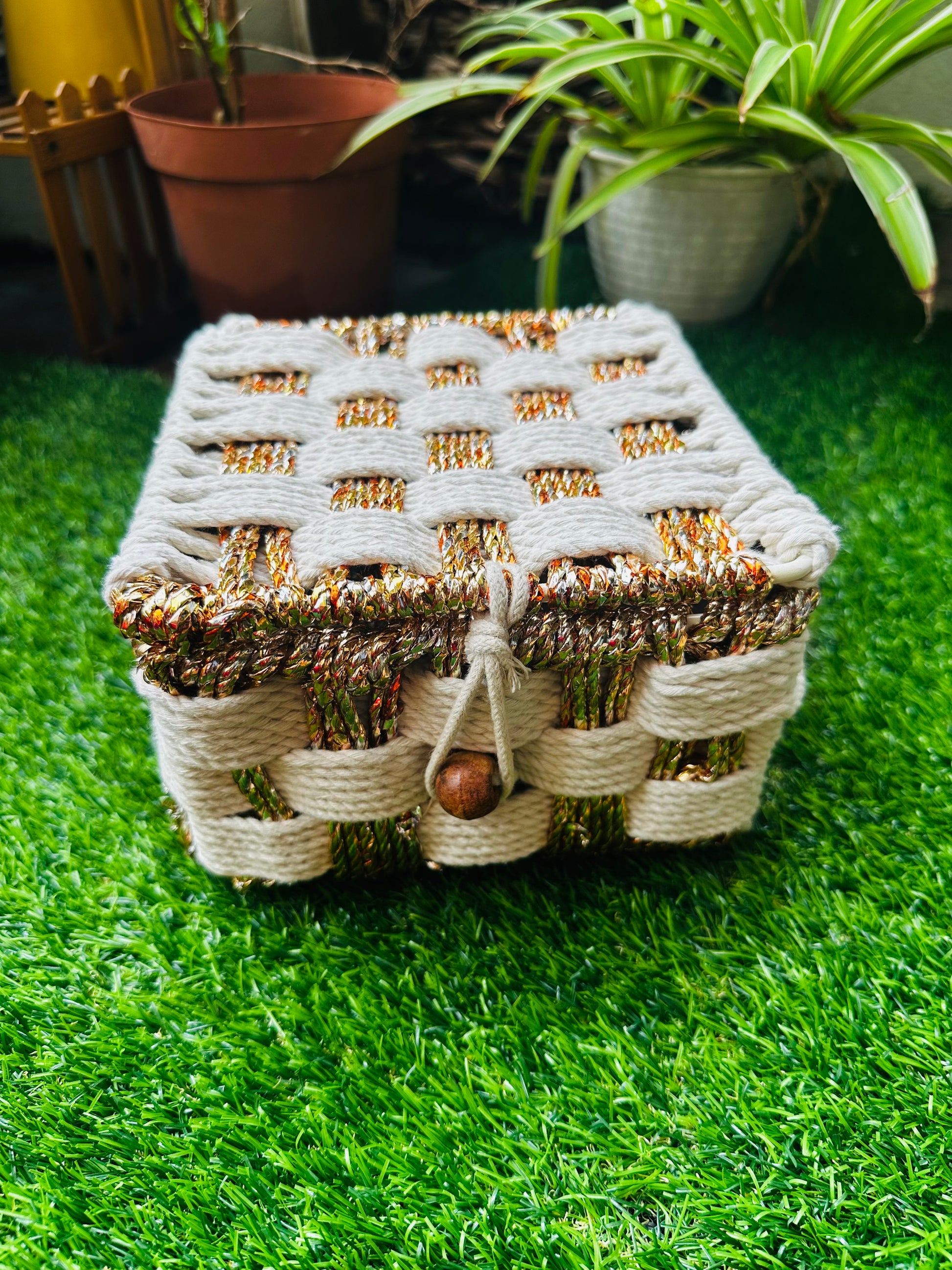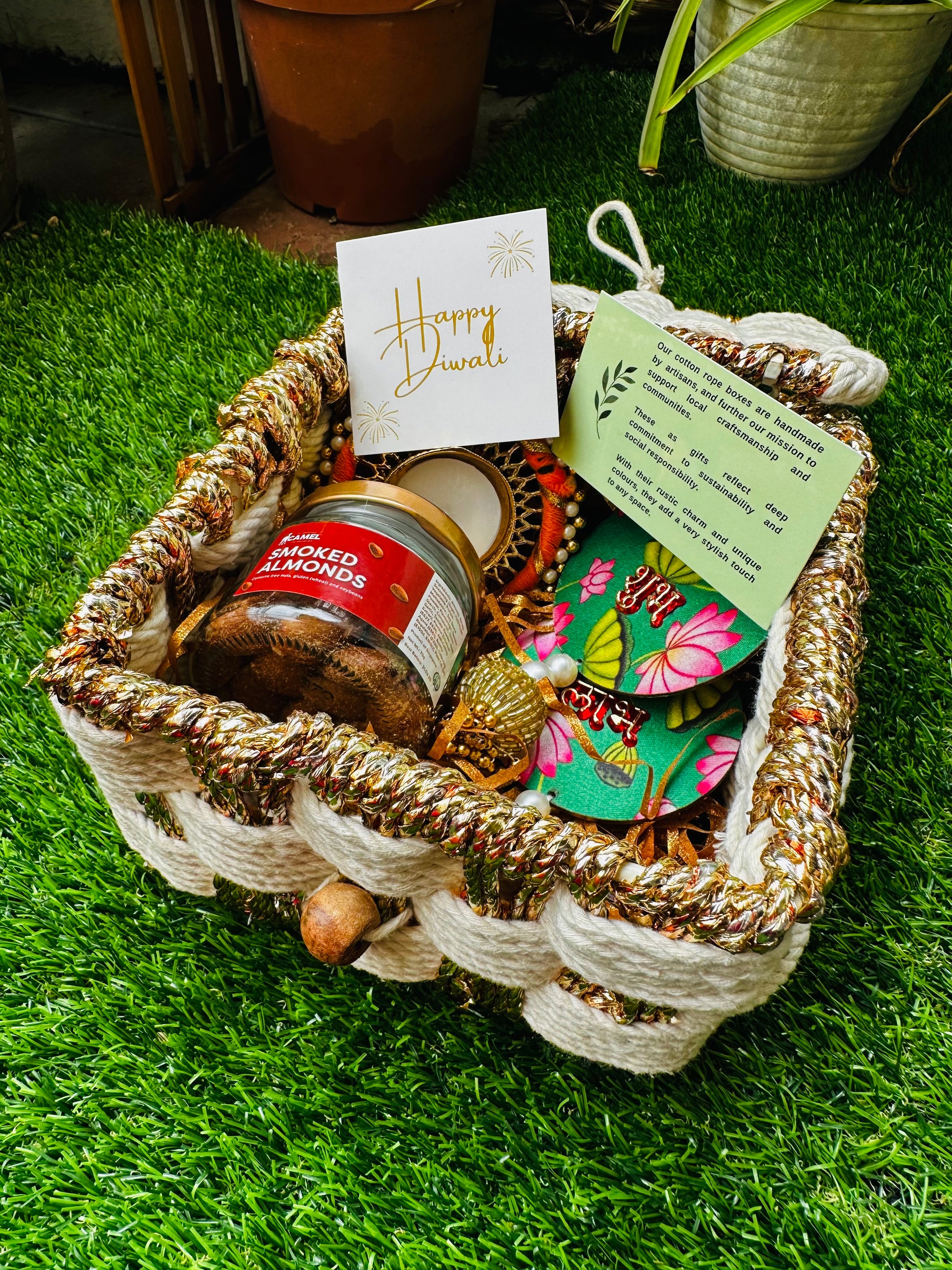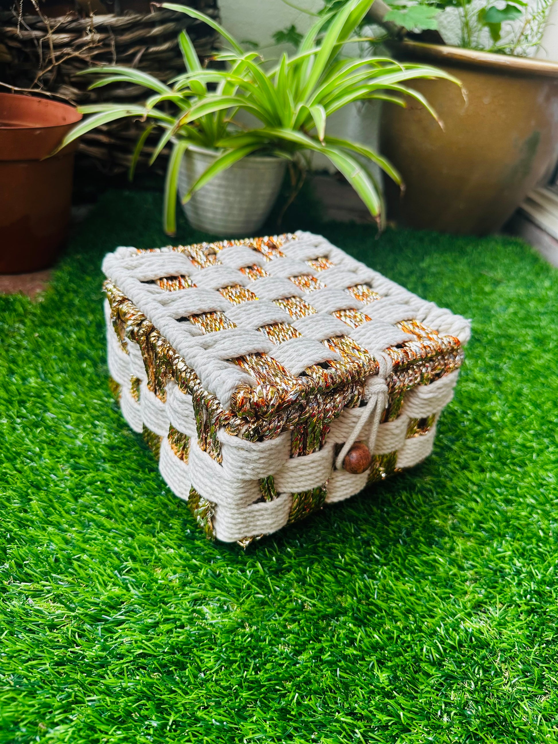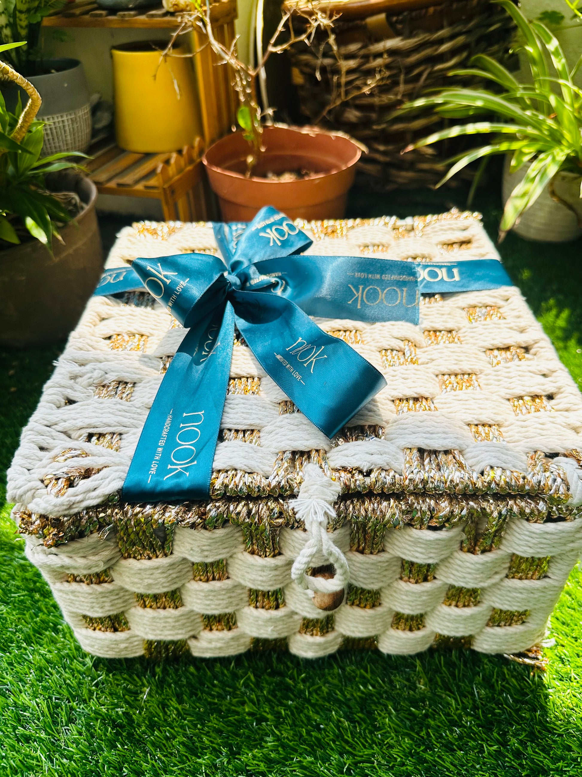 - Housed in a beautiful cotton rope organiser box white and gold (6 in X 6 in) by Nook