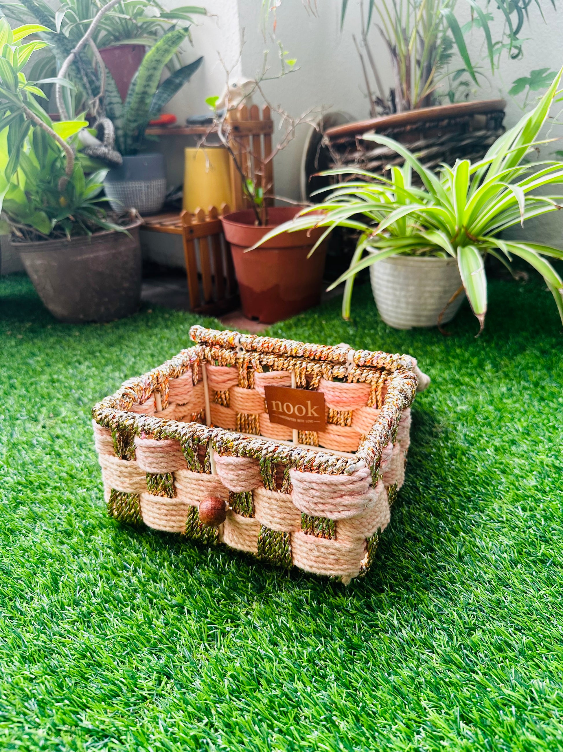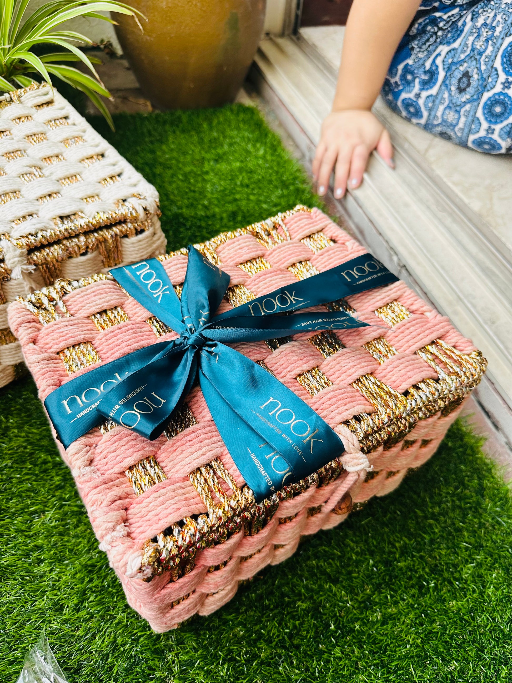 - Housed in a beautiful cotton rope organiser box peach and gold (7 in X 5 in) by Nook